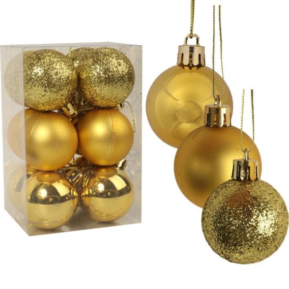 • Komplet 12 bombek plastikowych mix w kolorze złotym